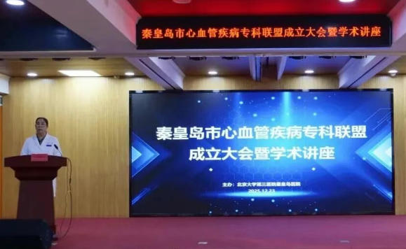 2025年12月23日,由北京大学第三医院秦皇岛医院牵头主办的秦皇岛市心血管疾病专科联盟成立大会暨学术讲座在军工院区隆重召开。秦皇岛市卫健委党组书记、主任高卫东,副主任刘瑞吉,北京大学第三医院秦皇岛医院常务副院长张文利,副院长高炜,纪委书记李爱琴,副院长吴晓玉,副院长谭强及全体中层干部,以及当地23家兄弟成员单位的代表共计200余人参加。大会特邀河北医科大学第四医院副院长马景涛教授,天津医科大学第二医院心脏科主任、天津心脏病学研究所所长刘彤教授参会并进行精彩授课。联盟成立大会由副院长吴晓玉主持。