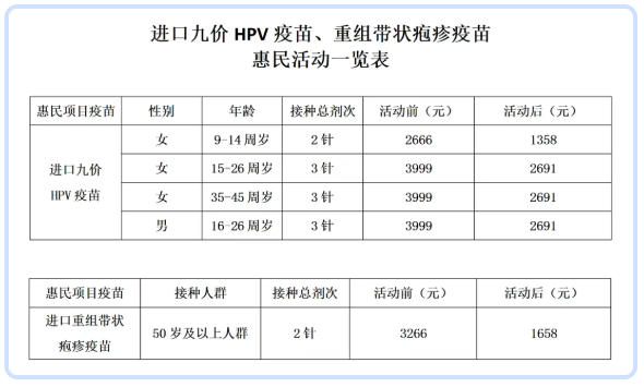 关于进口九价HPV、重组带状疱疹疫苗接种惠民活动的公告